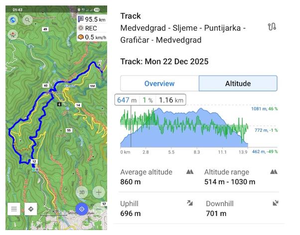 Trasa hoda: Medvedgrad – Sljeme – Puntijarka – Sljeme – Grafičar -Medvedgrad